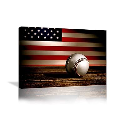 Baseball with american flag by vintage images canvas art arrives ready to hang, with hanging accessories included and no additional framing required.